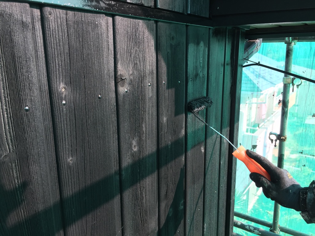 雨樋の塗装。マイルドシリコン 黒色にて。
