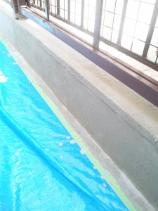 防水工事はカチオンの続き、プライマー、そして主剤まで塗布いたしたいと思います。
