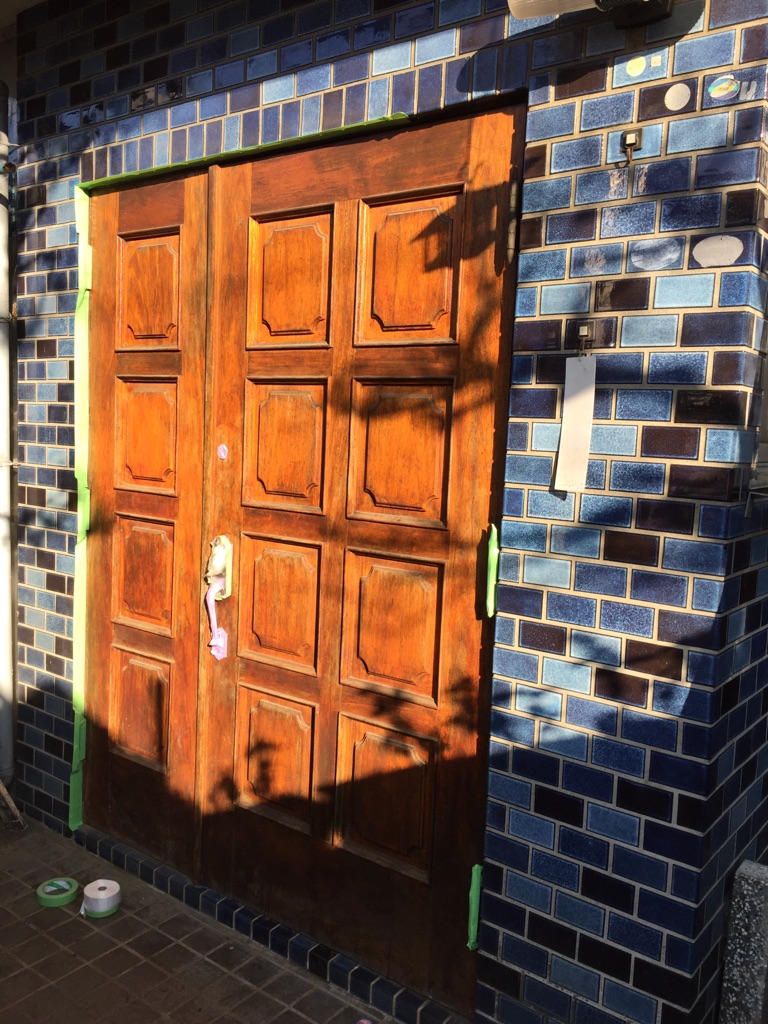 玄関ドアも一度も処理することなく塗装を何度も繰り返している様子です。