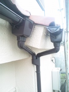 昨日外壁まで終わっているので、今日は鉄骨や雨樋、トタンといった部分を塗装しました。