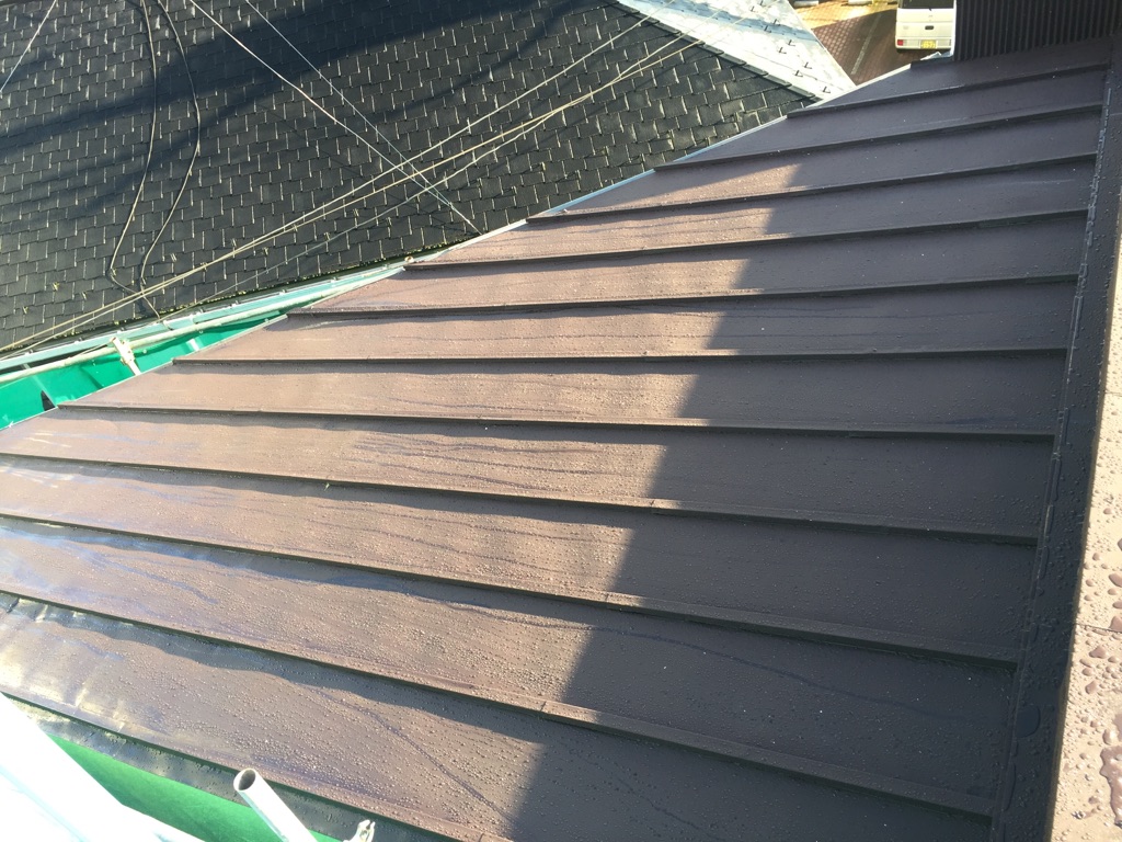 大屋根トタン マイルドシリコン ココナツブラウン色塗装。